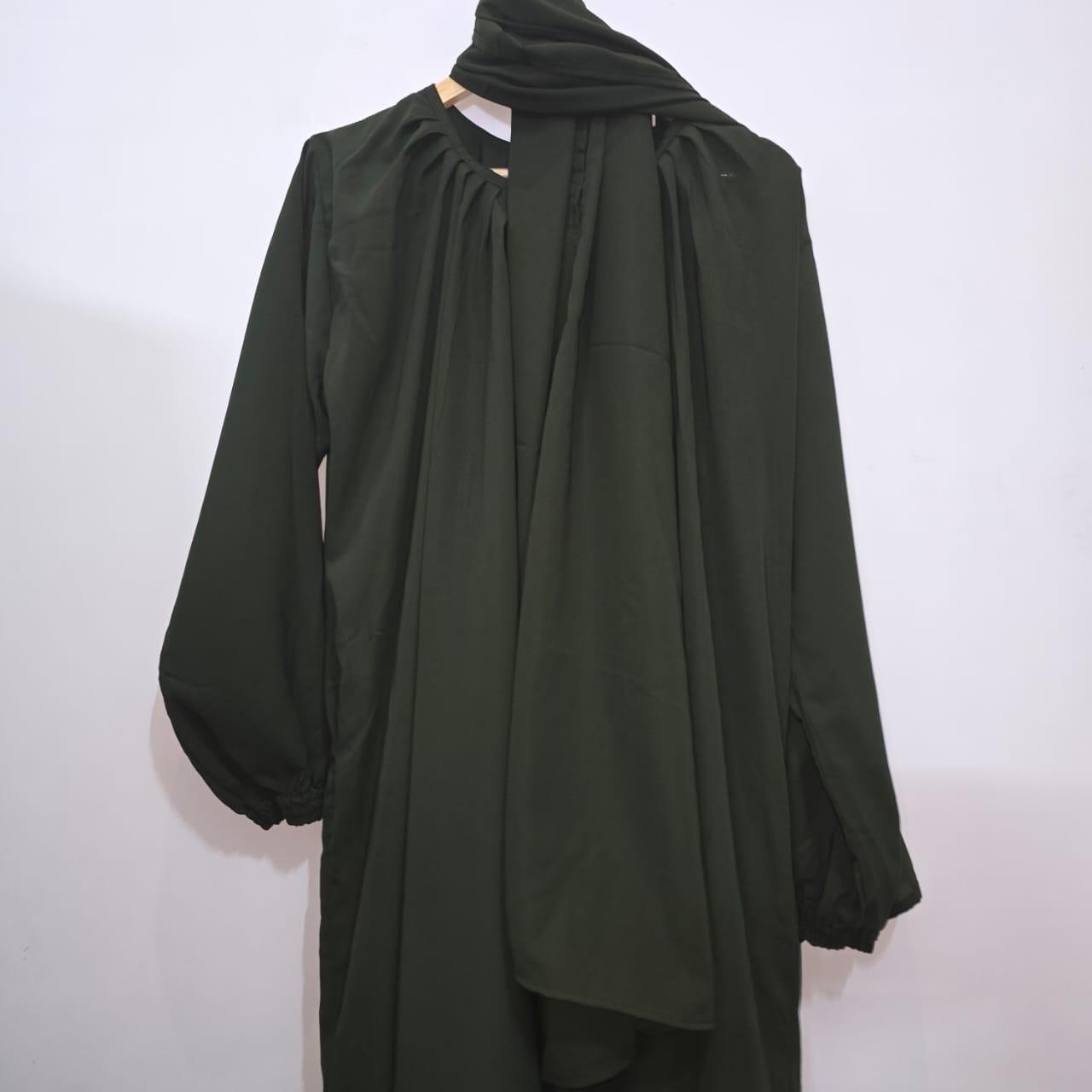 Disclaimer: Hijab is green in colour, like the abaya. It appears different in the pictures due to the light effect.