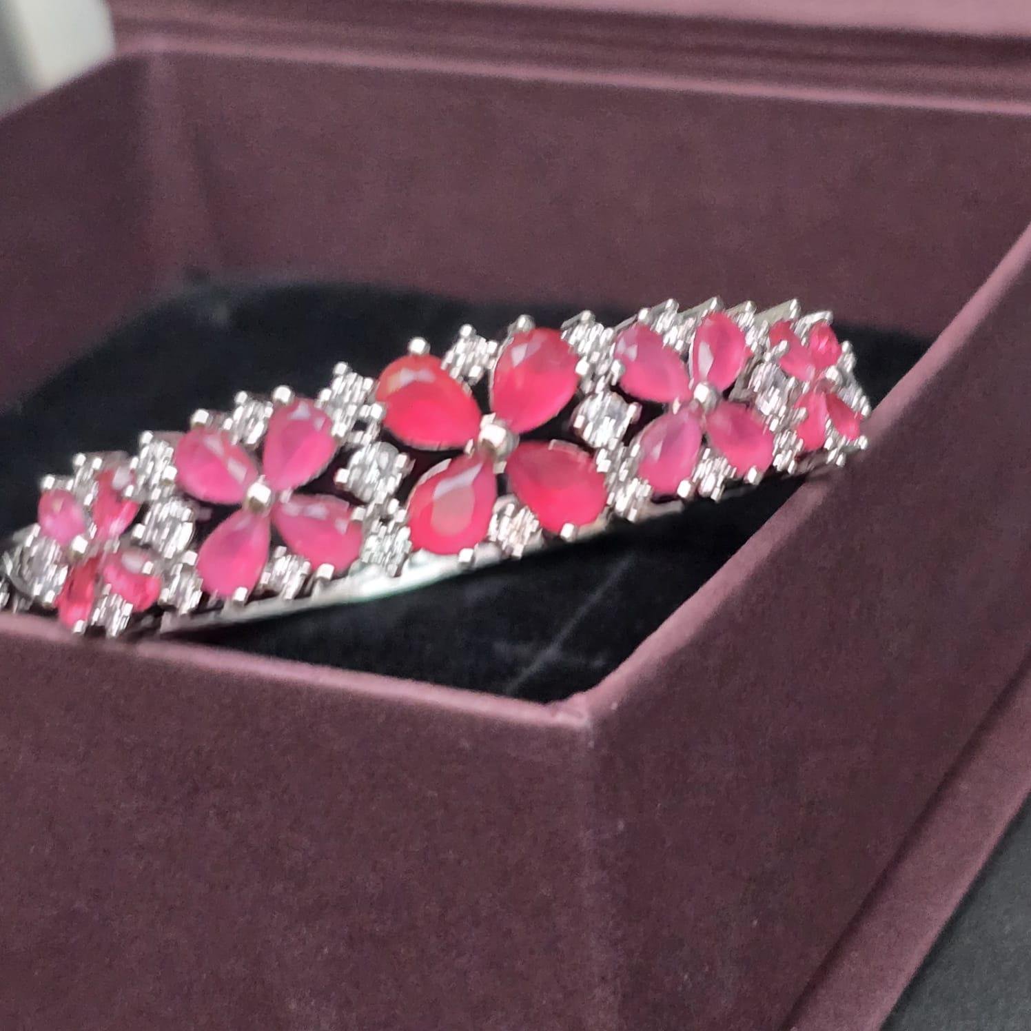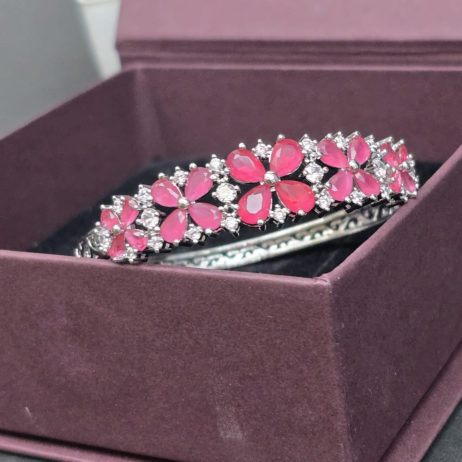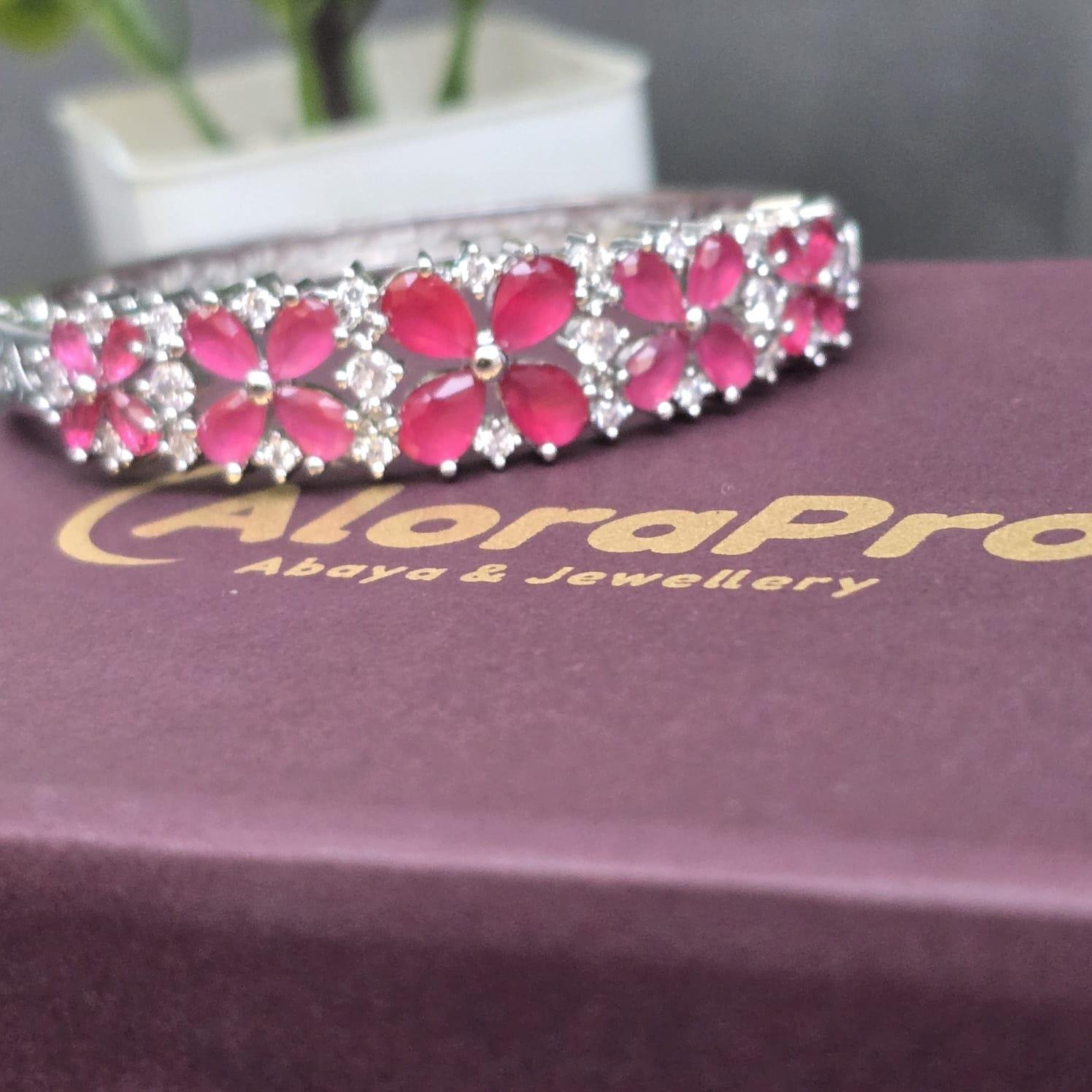 Made with high-quality materials, these bangles add an elegant touch to your ensemble. The anti tarnished 4 leaves flower design stones provide a classic and sophisticated look. Elevate your style with these stunning bangles......Note: Image may be vary slightly from the actual product.