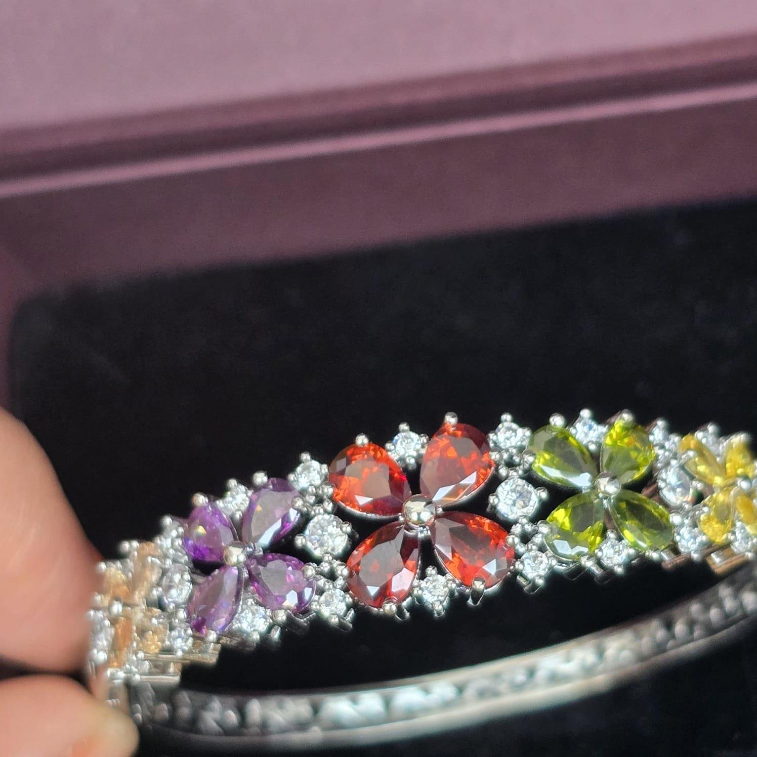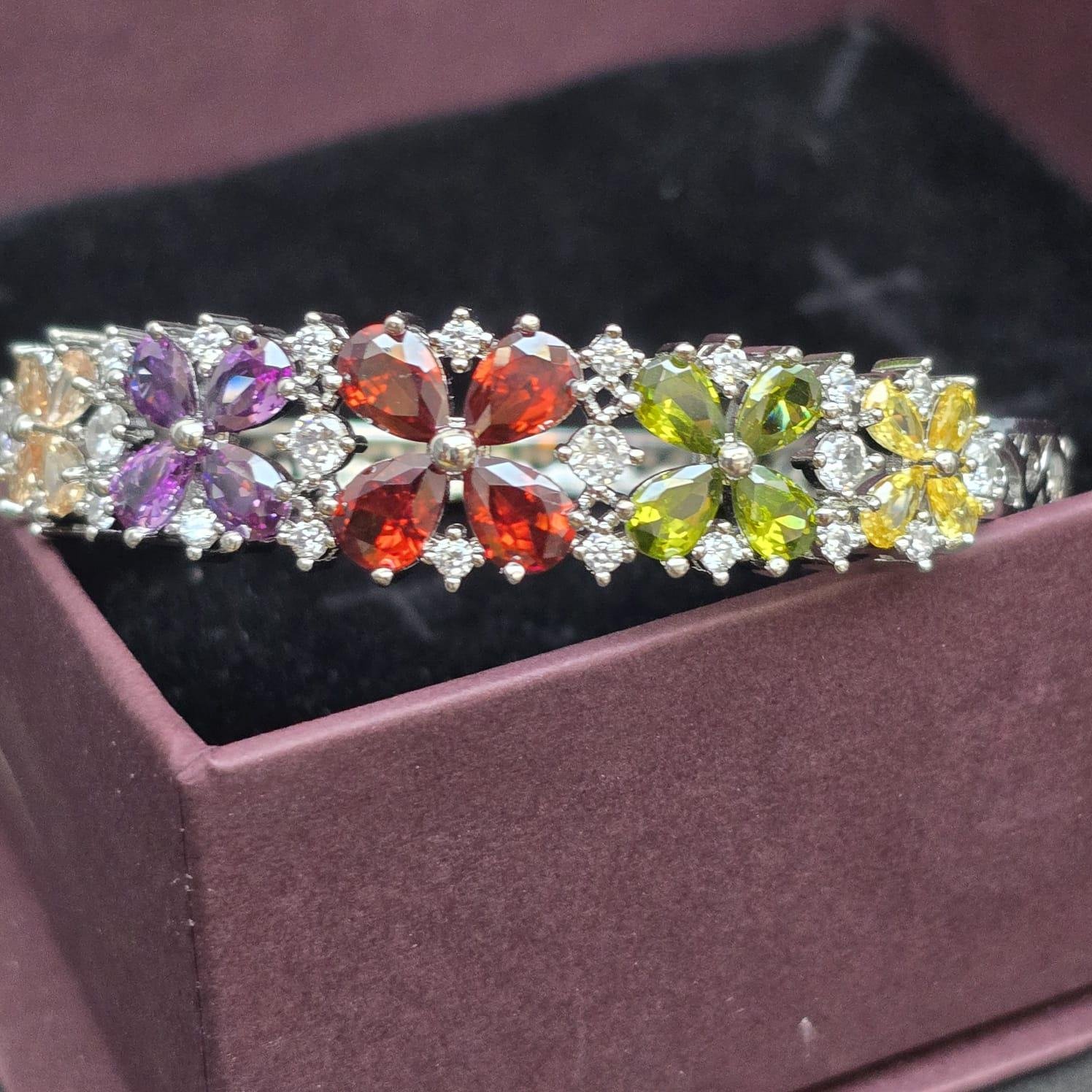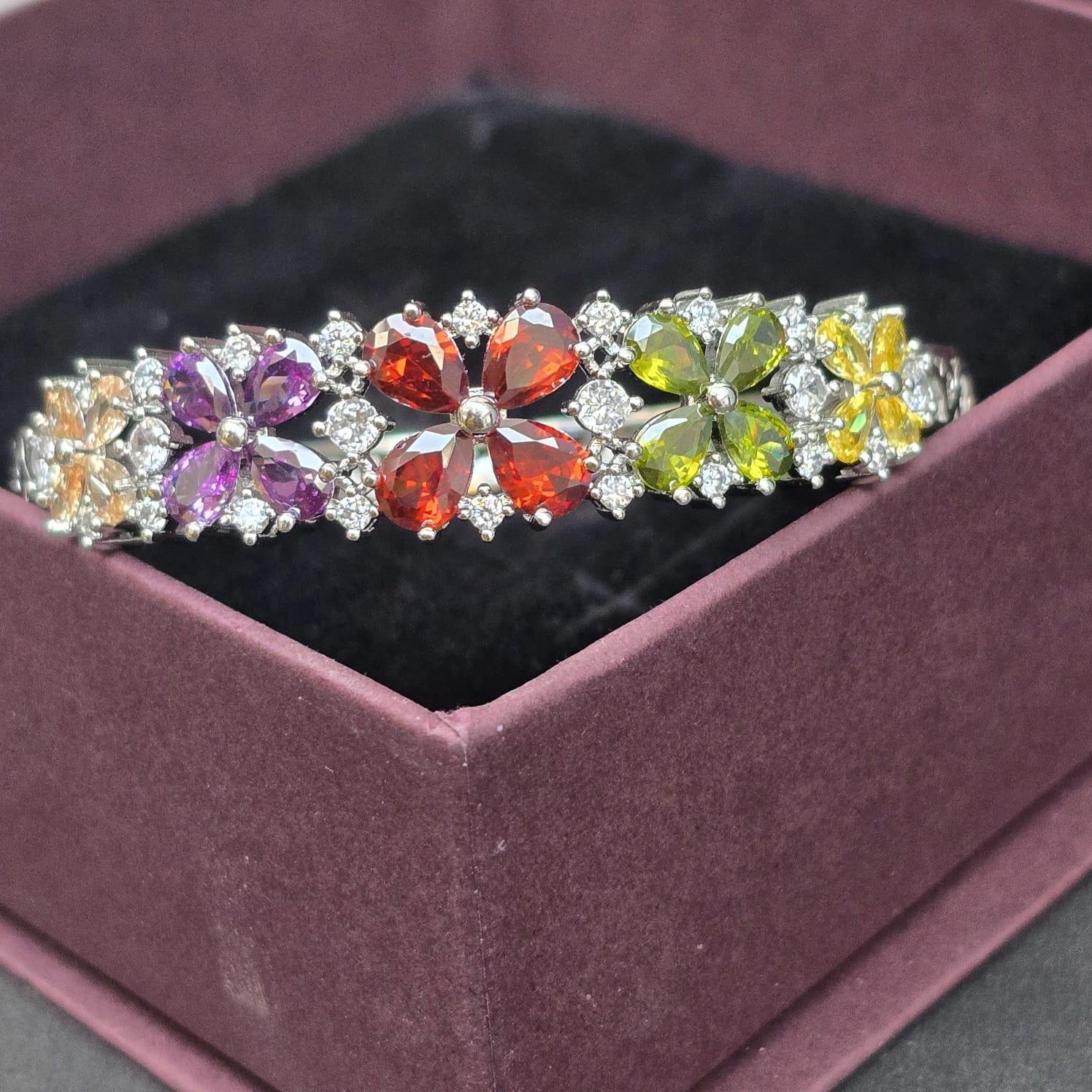 Made with high-quality materials, these bangles add an elegant touch to your ensemble. The anti tarnished 4 leaves flower design stones provide a classic and sophisticated look. Elevate your style with these stunning bangles......Note: Image may be vary slightly from the actual product.