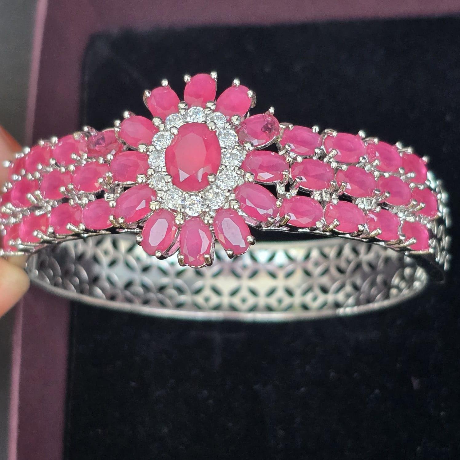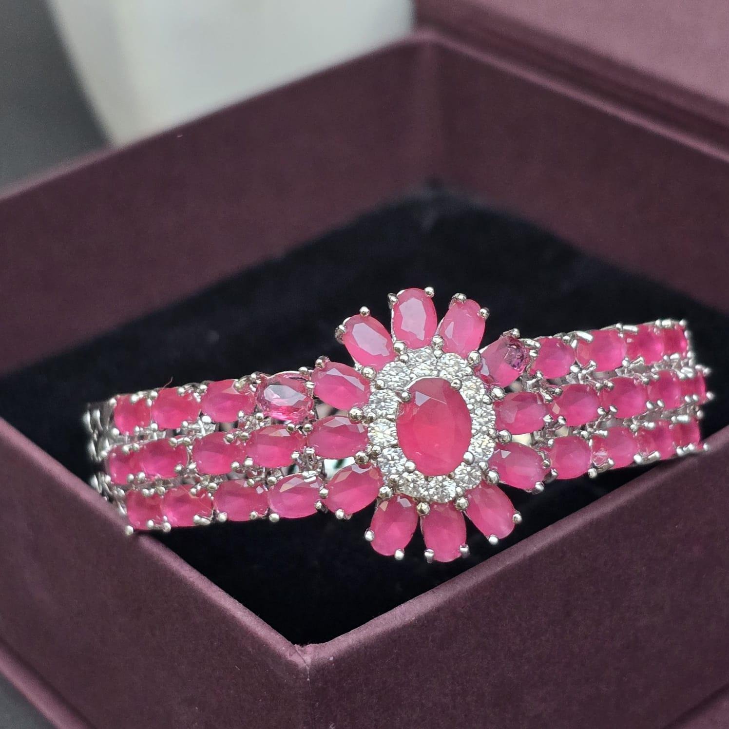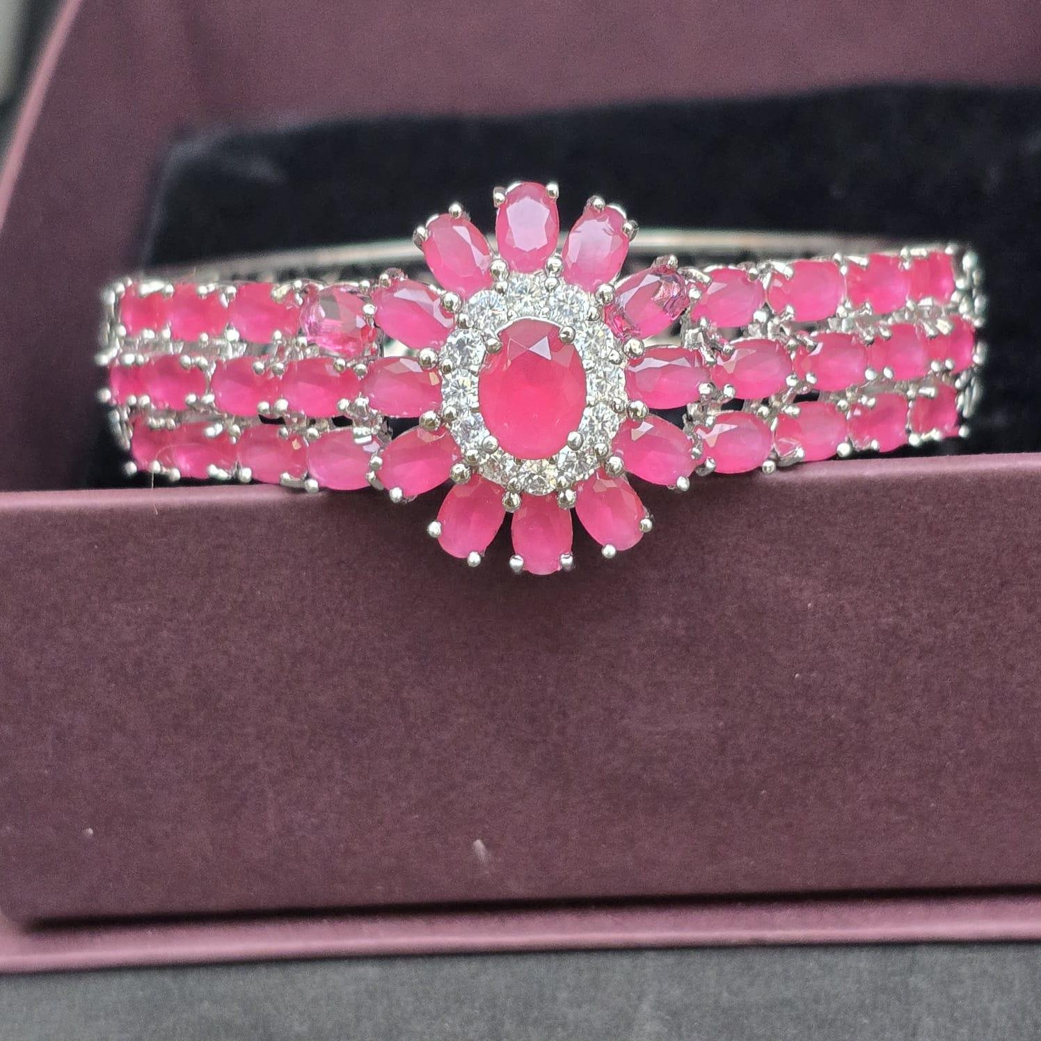 Made with high-quality materials, these bangles add an elegant touch to your ensemble. The anti tarnished flower design stones provide a classic and sophisticated look. Elevate your style with these stunning bangles......Note: Image may be vary slightly from the actual product.