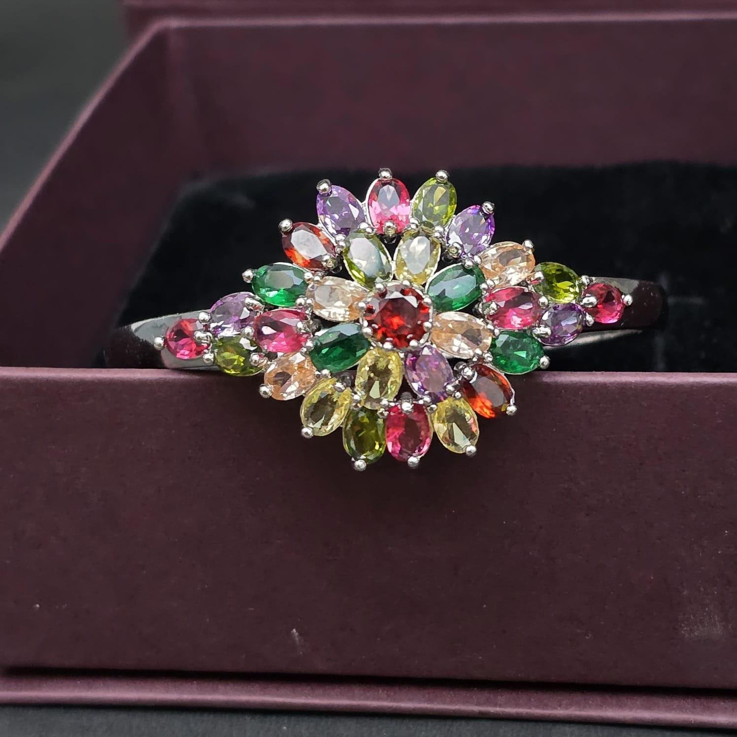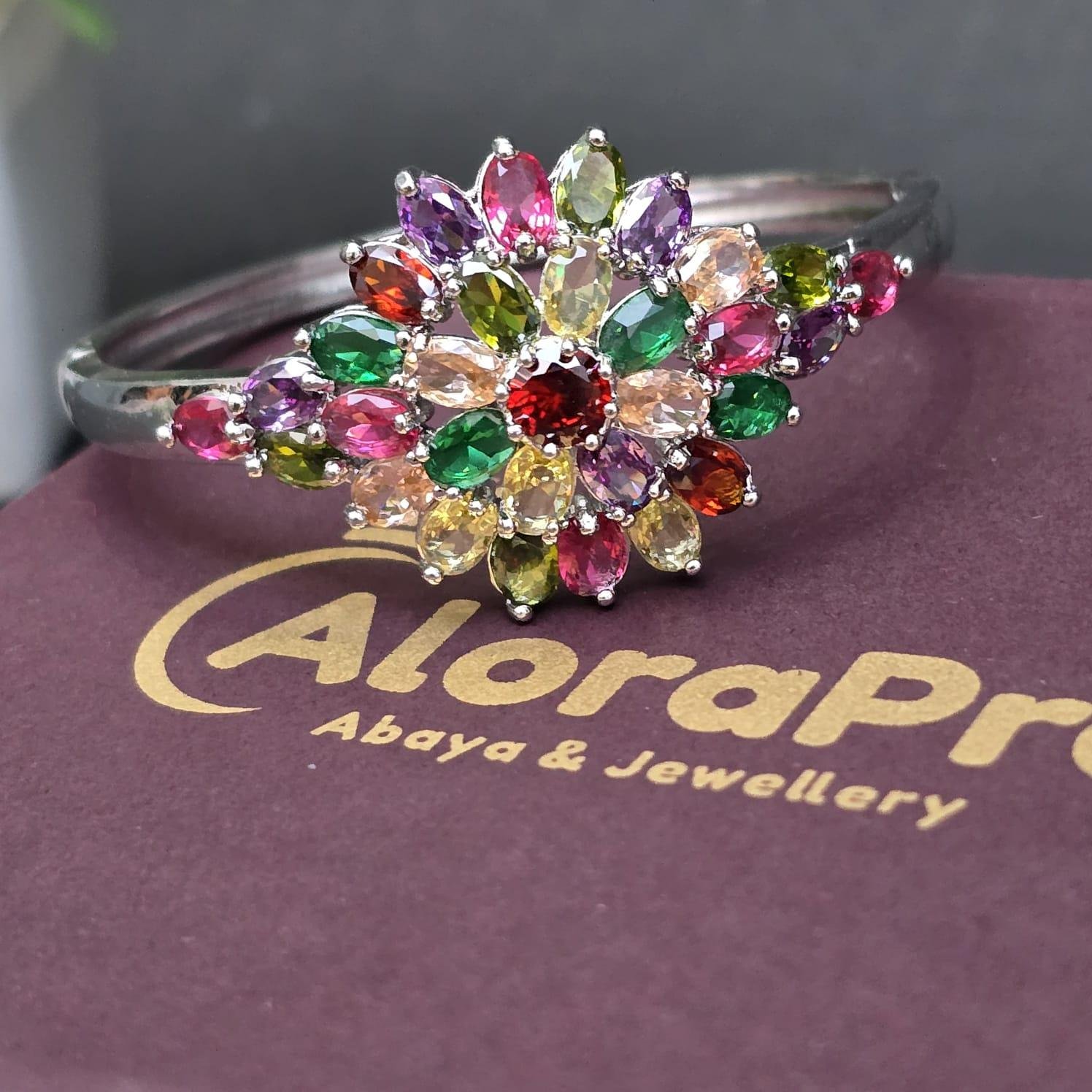Made with high-quality materials, these bangles add an elegant touch to your ensemble. The anti tarnished flower design stones provide a classic and sophisticated look. Elevate your style with these stunning bangles......Note: Image may be vary slightly from the actual product.