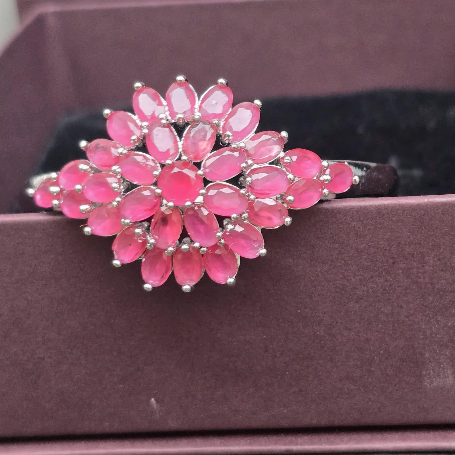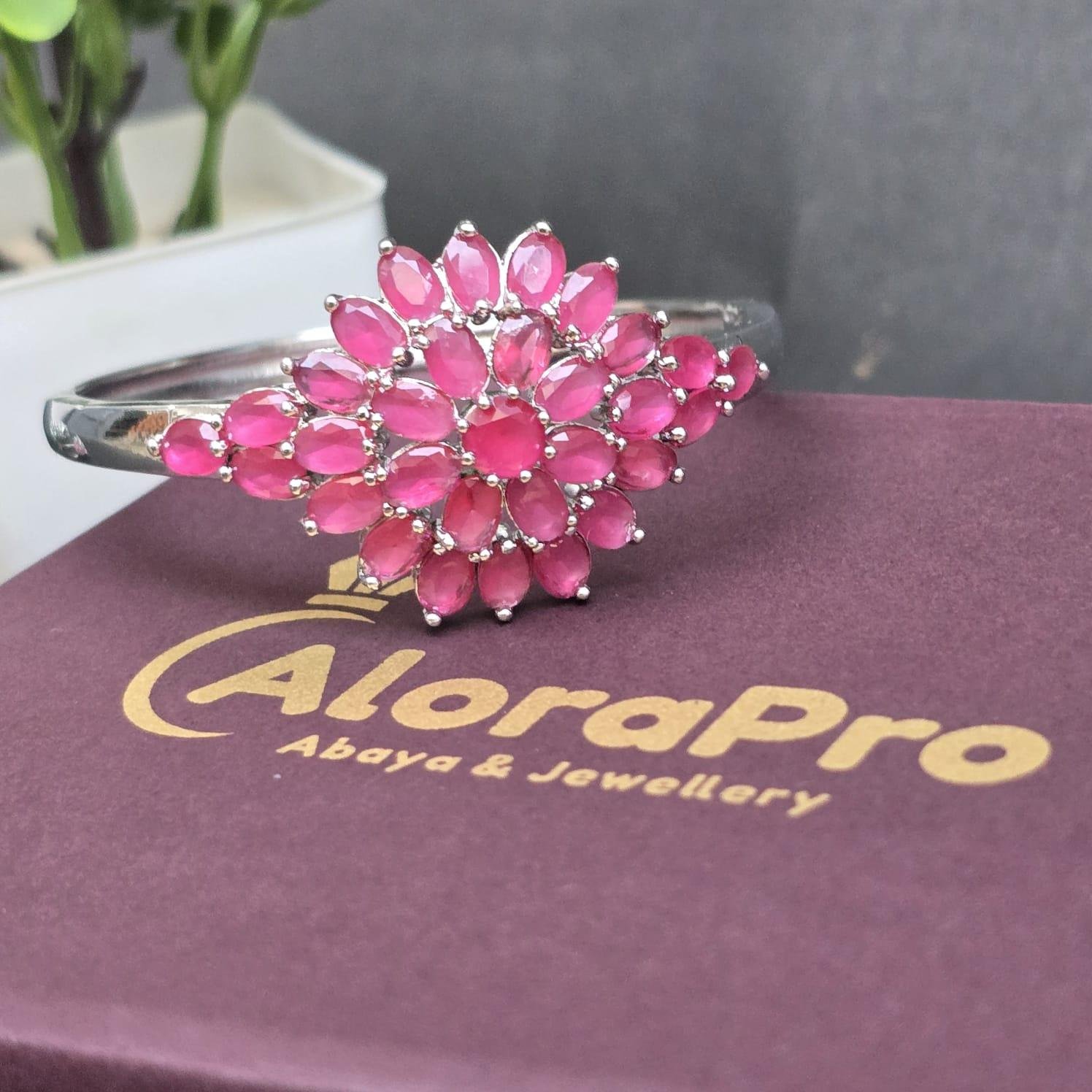 Made with high-quality materials, these bangles add an elegant touch to your ensemble. The anti tarnished flower design stones provide a classic and sophisticated look. Elevate your style with these stunning bangles......Note: Image may be vary slightly from the actual product.