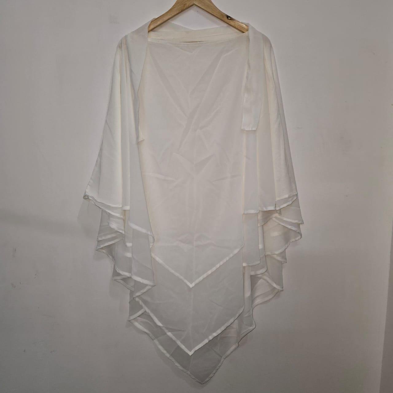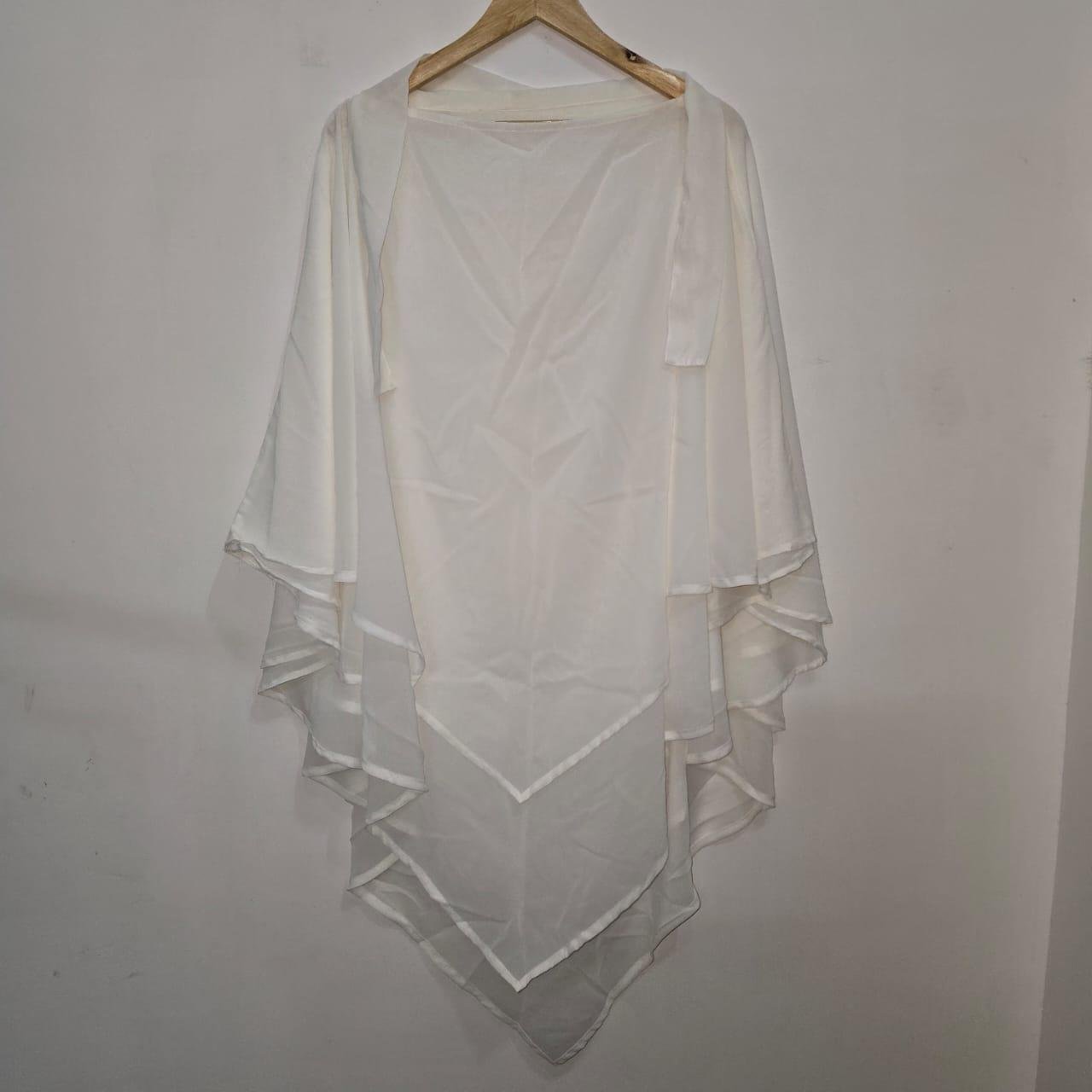 Triple Layer At Back, Dual Layer At Front, Length At The Front Is 40 Inches And At The Back Is 46 Inches, Unique Niqab Feature, Easy To Style, Tie Back Strings.